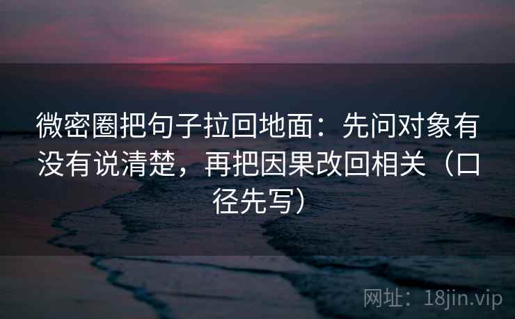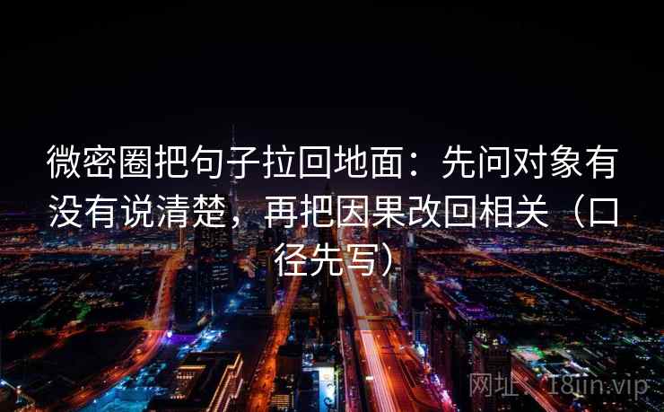 通过“微密圈把句子拉回地面:先问对象有没有说清楚,再把因果改回相关(口径先写)”这一策略,我们可以有效地提升信息传递的准确性和清晰度,确保在各种情境中的沟通更加顺畅和高效。