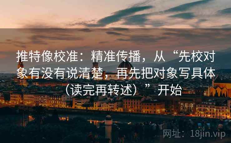 在数字时代,精准传播已经成为成功的关键。通过“先校对象有没有说清楚,再先把对象写具体(读完再转述)”这一策略,我们可以在推特上实现信息的高效传播,从而更好地与目标受众互动和交流。